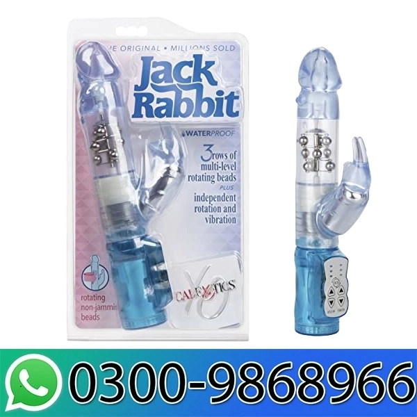 The CalExotics Waterproof Jack Rabbit Vibe is a dual?action personal massager designed for versatile stimulation. Featuring a rotating bead shaft paired with an independent external stimulator, this vibe offers multiple speed and function settings. Its waterproof construction allows for use in the shower or bath, and the ergonomic shape makes it suitable for a range of preferences and comfort levels.