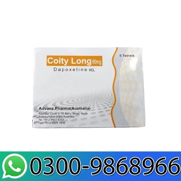 Coity Long Dapoxetine 60?mg Tablets are a prescription medication specifically designed to treat premature ejaculation (PE) in men. By enhancing control over ejaculation, these tablets help improve sexual satisfaction for both partners. Dapoxetine, the active ingredient, is a fast-acting selective serotonin reuptake inhibitor (SSRI) that works quickly and effectively, making it suitable for on-demand use prior to sexual activity.