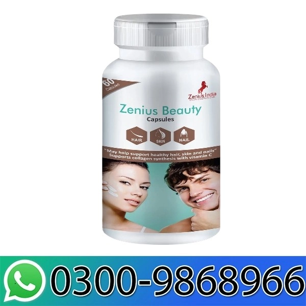 Zenius Beauty Capsule is a vitamin-rich herbal supplement formulated with Vitamin C, biotin, and natural extracts to support glowing skin, stronger hair, and healthier nails by nourishing the body from within.